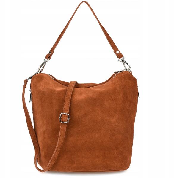 Beltimore Kézitáska Postás Táska Bőr női cipzáras tágas olasz velúrbőr (W17cognac)ALLEGRO