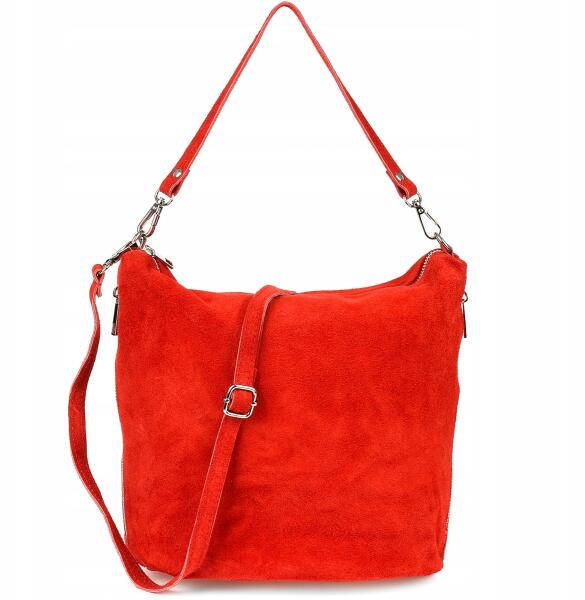 Beltimore Kézitáska Postás Táska Bőr női cipzáras tágas olasz velúrbőr (W17red)ALLEGRO