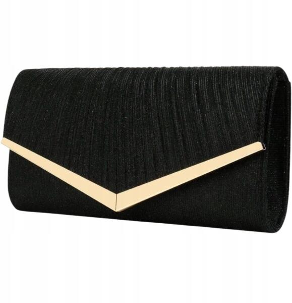 EdiBazzar Fekete, csillogó borítéktáska alkalmi táska esküvőre, partira, kis méretű (Wizytowa Błyszcząca Torebka Kopertówka)ALLEGRO