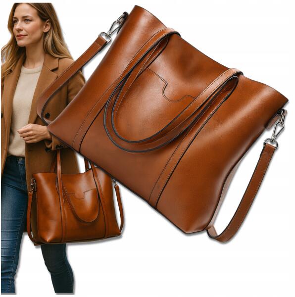 EdiBazzar Nagy Méretű Bőr Shopper Táska Klasszikus Válltáska Női Városi A4 (Torebka z Eko Skóry Brązowa Damska Modna)ALLEGRO