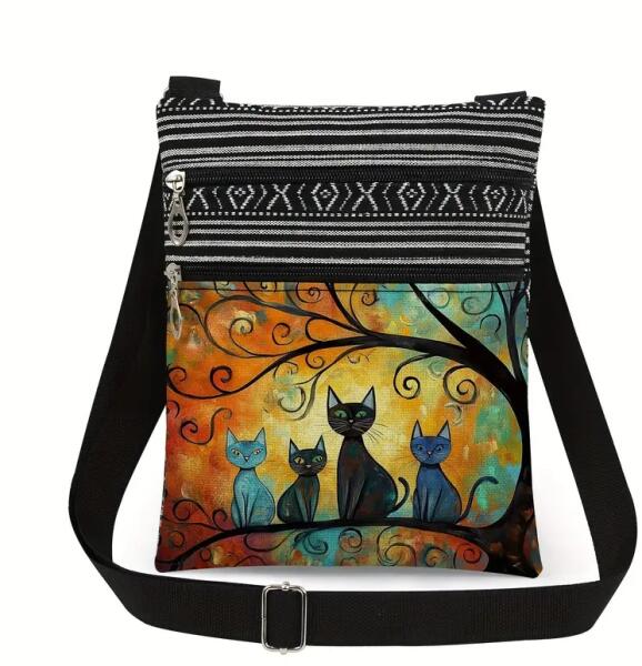 Etnikai válltáska boho színes 4 macska fa macska család Pop Art (xky7015)
