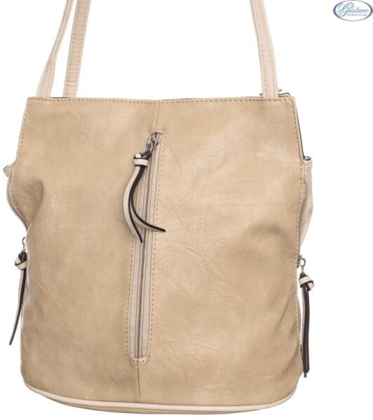 Hernan barna-bézs női táska. 1 cipzáras rekesszel rendelkezik, amely belül 2 részre van osztva egy cipzáras választó rekesszel. Belsejében 1 kis cipzáras zseb és 2 kis zseb kapott helyet. Kívül az elején és a  hátulján 1-1 cipzáras zseb található. Vállpántja hossza állítható. Hordható hátizsákként is. Jellemzők: