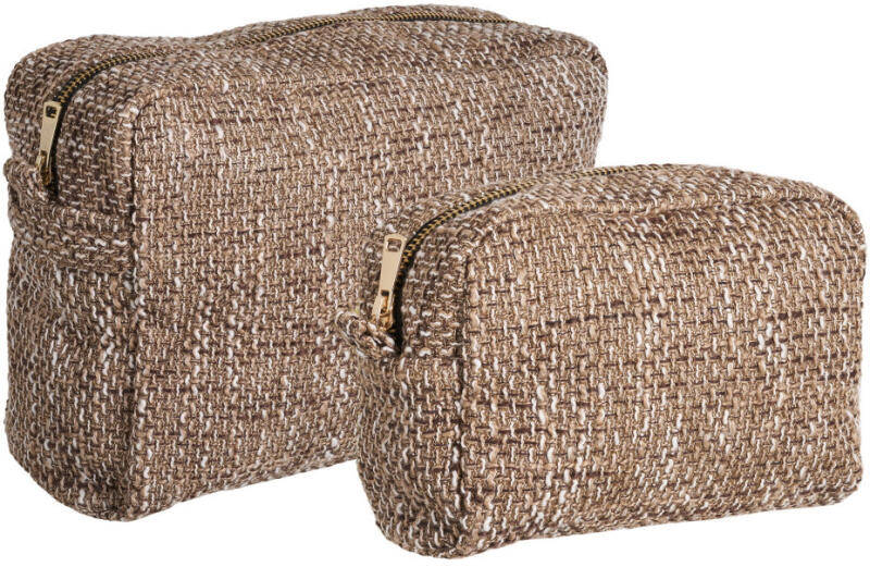 Safi neszeszer – barna mix, 2 db-os szett Kifinomult tárolás, természetes színekben A Safi neszeszer szett visszafogott barna árnyalataival és kellemes tapintású kevert textil anyagával elegáns kiegészítője lehet bármilyen táskának vagy fürdőszobai polcnak. Két különböző méretű darabot tartalmaz, így a sminkeszközöktől a fésűig minden átláthatóan rendszerezhető benne. Fő jellemzők Anyag: kevert textil Szín: barna mix Kiszerelés: 2 db-os szett (eltérő méretek) A kisebb neszeszer ideális apróbb kiegészítőkhöz, míg a nagyobb biztonságosan elnyel akár utazós méretű pipereeszközöket is. Tartós cipzárja hosszú élettartamot garantál. Kiknek ajánljuk? utazóknak és naponta ingázóknak, rendszerezést kedvelőknek, akik természetes, időtálló dizájnt keresnek. Mert a részletek számítanak A Safi neszeszerek segítségével mindig kéznél lesz minden, amit fontosnak tartasz – rendezetten, stílusosan.