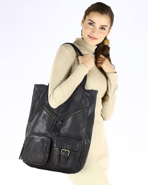 Modern és funkcionális: nagy bőr shopper zsebekkel
