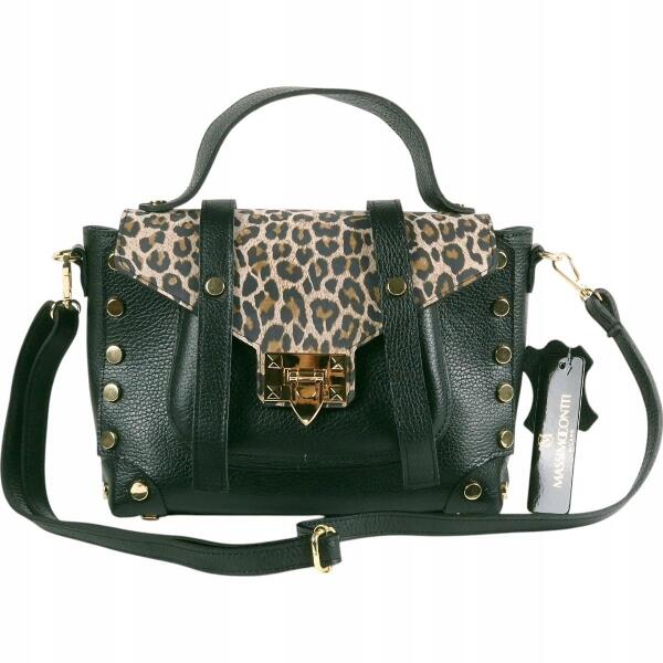 Massimo Connti Massimo Contti kézitáska postás táska valódi bőr fekete leopárdmintás (621CP)