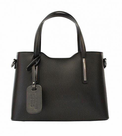 Női kézitáska valódi bőrből, fekete színben. Merev tartású, elegáns női kézitáska klasszikus fekete színben.