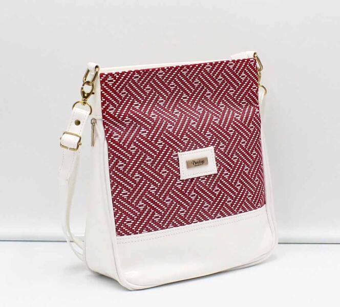 Prestige fehér / lakk / piros mintás bővíthető aljú női rostbőr válltáska